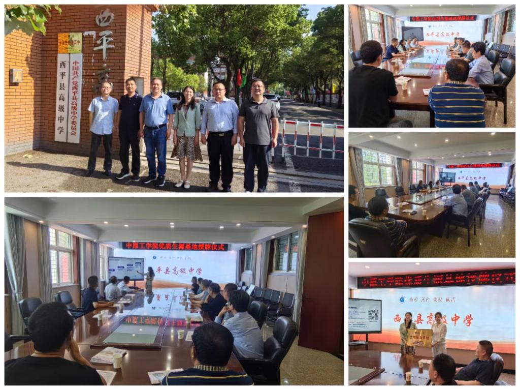 在驻马店市,我院招生宣传组分别与西平县高级中学校长王骁黎、驻马店市第二高级中学校长陈有轩以及两所高中的领导班子成员、高三班主任进行了座谈交流。在座谈会上,宣传组播放了学校的宣传片,曲光华介绍了我校的办学特色、科学研究、专业设置、人才培养等方面的基本情况,重点介绍了我校高标准推进筹建河南电子科技大学的发展前景。双方就探索构建“高中-高校”贯通式育人模式进行了沟通交流。随后,在两所高中分别举行了英国威廉集团优秀生源基地授牌仪式。