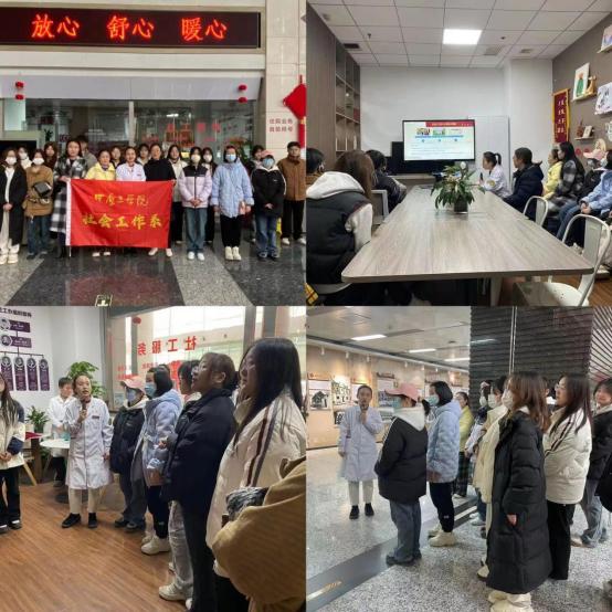 2024年3月1日,在朱时艺老师的带领下,社会工作23级学生前往郑州人民医院进行专业认知实践。郑州人民医院门诊部乔红梅副主任为大家介绍了医院社工情况及医务社工工作模式和工作开展方式,并带领同学们参观文化长廊,介绍医院发展状况及社会工作办公室发展历程,帮助了解医院社工的功能及发展方向。还带领同学们参观了社工服务项目“萤火之家”,展示医务社工公益责任与担当,增强大家对社会工作专业的责任感。在随后举行的参观座谈会上,乔主任全面介绍了医院社工以小组活动、创新服务、社工+志愿联动的工作开展模式。