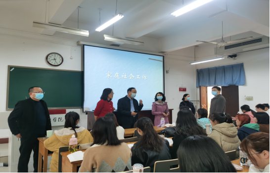 在三号教学楼409教室,王肃认真询问社会工作系朱时艺老师的课堂教学准备情况,并同社工19级同学亲切交谈,简要介绍了社会工作未来发展方向,鼓励同学们扎实学好专业,珍惜上课时光,为未来发展做好积淀,不负韶华,不负青春。