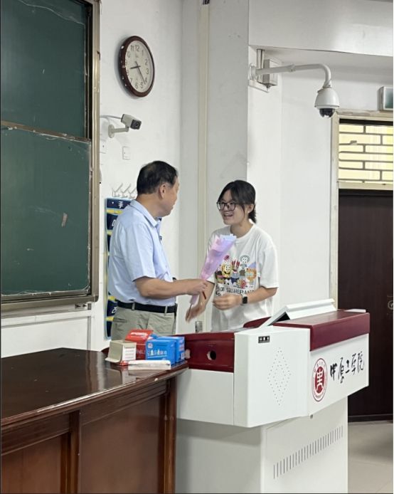 当日的课堂,暖意融融。各班学习委员精心组织,同学们手持鲜花静候老师的到来。当任课教师步入教室或课程间隙,同学们齐声起立,将满载心意的鲜花献至老师手中,并高声齐呼:“老师您辛苦了,祝您教师节快乐!”铿锵有力的祝福声在教室中回荡,质朴的话语中饱含着对老师的感恩之情。