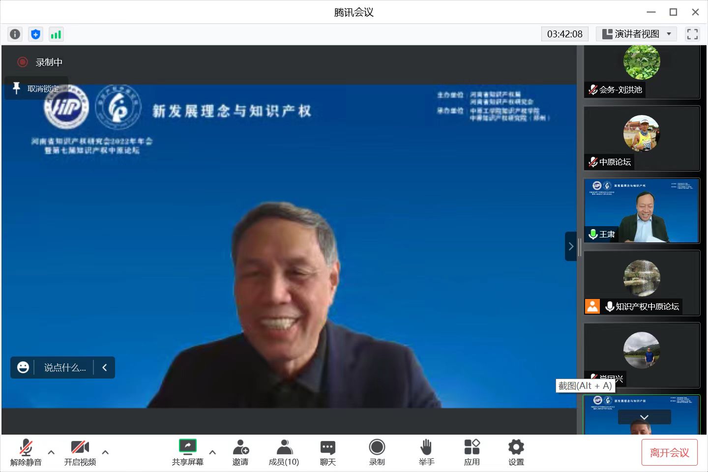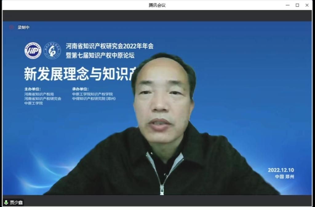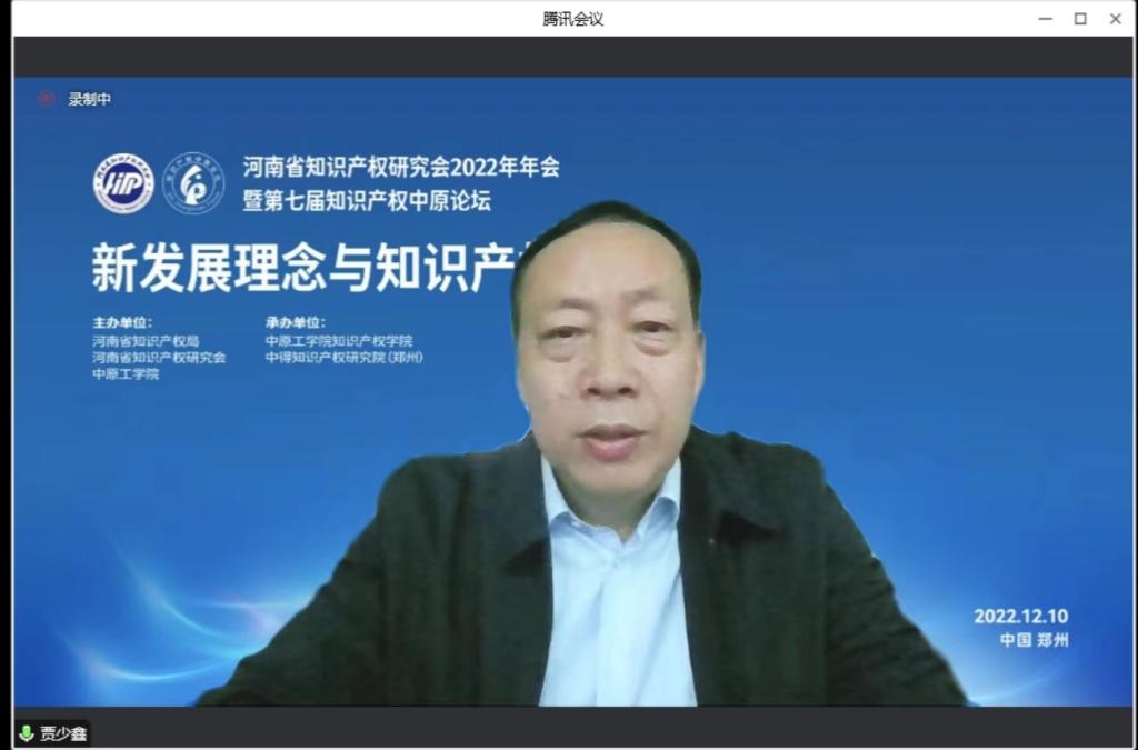 12月10日,河南省知识产权研究会2022年年会暨第七届知识产权中原论坛在郑州召开,围绕“新发展理念与知识产权”主题建言献策。本次论坛采取腾讯线上会议加B站线上直播的方式呈现会议内容,来自政府、司法机关、高校、企业、服务机构的1000多名知识产权专家学者、实务界人士参加论坛。