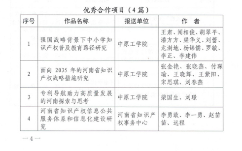 近日,河南省知识产权局公布了首届河南省知识产权优秀调查研究报告暨优秀软课题研究成果征集活动评选结果,我院王肃、张金艳、柴国生等三位老师主持的项目荣获优秀合作项目奖。