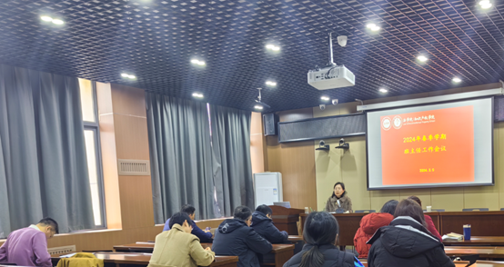 会上,陈义珊对全院班主任的辛勤工作表示感谢和肯定,分享了自己班主任工作的经历和感悟,并从2024年学生工作计划、本学期学生思想教育和行为引导、班风学风建设、学业规划、心理健康教育等方面给班主任做了讲解和安排。针对新学期的工作,她从以下几个方面进行了工作提醒:一是要守牢安全底线不动摇,二是要围绕学生、服务学生、关心关爱学生不断线,三是要坚持工作落实落细不放松。同时,她还动员各位班主任依据学校相关管理制度中学生先进班集体、文明宿舍建设和优秀班主任等评选办法对标找差、创先争优,为助力学生成长成才和学校学院发展做出积极贡献。