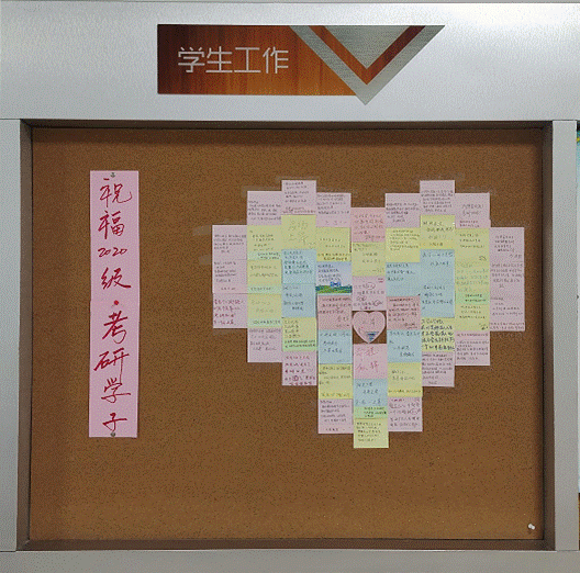 根据教育部统一安排,2024年全国硕士研究生招生考试将于12月23至25日进行,为了给考研学子加油助力,12月18日-12月19日,我院学生会学习部组织开展了“给2020级考研学子送祝福”活动。