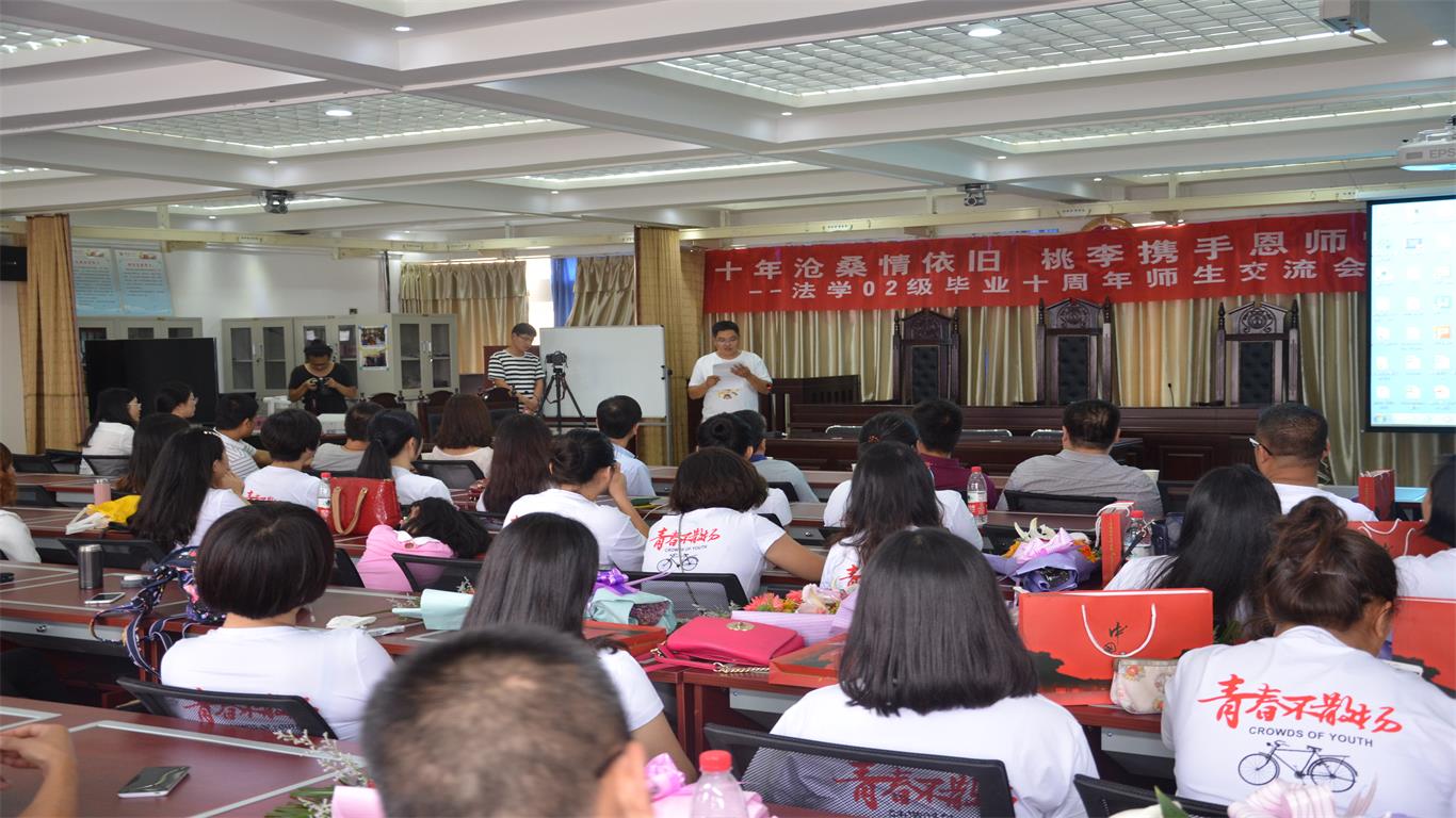 9月24日,2002级法学专业毕业生重回母校,在我院模拟法庭举办了校友见面会。