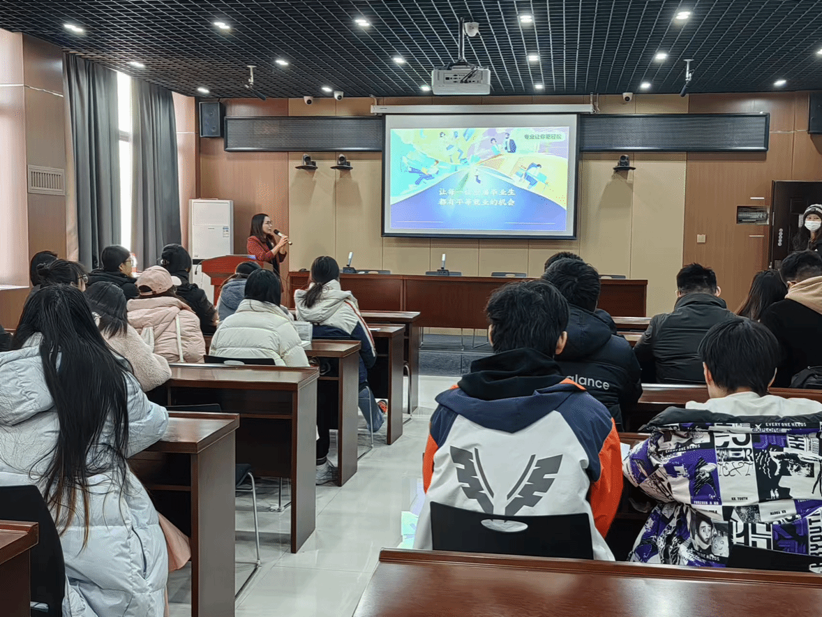 为贯彻党中央、国务院和省委、省政府关于做好高校毕业生就业工作的决策部署,落实落细各项促就业政策措施,给学生提供更加精准有效的就业指导,12月31日,我院举办了就业指导校园宣讲会。河南豫荐轩澄教育科技有限公司总经理汪家伦、主讲老师张冬菊,我院党委副书记陈义珊、学工办主任李学强等和各年级学生代表参加宣讲活动。