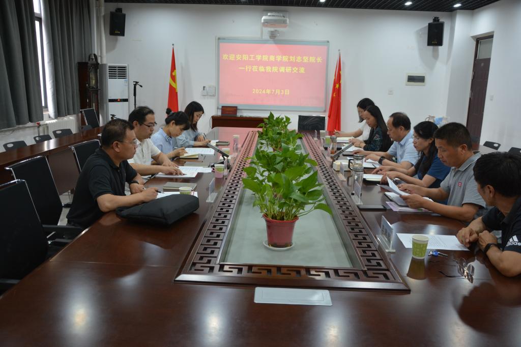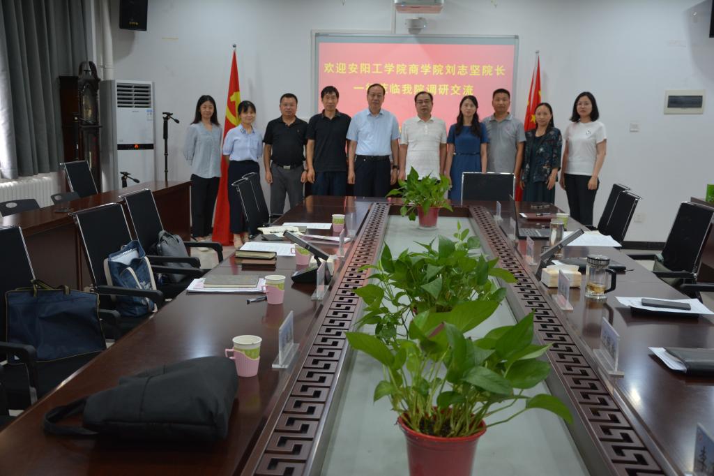 7月3日,安阳工学院商学院院长刘志坚一行4人到我院调研交流。我院党委书记曲光华、院长王肃、副院长付琛瑜和有关系室负责同志参加在学院会议室进行的座谈交流,座谈会由王肃主持。