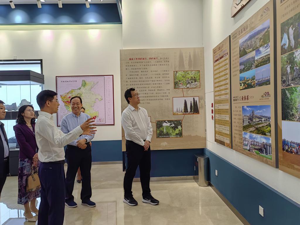 河南省地质局党组书记、局长石迎军对张宝强一行表示热烈欢迎,高度称赞了我校决战决胜推进河南电子科技大学筹建工作取得的成就。在河南省地质局组织人事处处长马远新陪同下,张宝强一行参观了河南省地质局地质成果展和地质文化陈列馆。随后双方进行深入调研座谈,调研座谈会由河南省地质局党组成员、副局长陈彦召主持。陈彦召介绍了河南省地质局的发展沿革,由其是在组建“一局一院一集团”新格局后,在落实聚焦能源资源勘察、服务生态文明建设、地质灾害防治等主责主业方面彰显了行业担当,同时,近年来不断拓展发展空间、着力提升科技创新能力,大力推动地质产业方面取得了明显成效,她表示,加强与我校在人才培养,科研平台、就业创业等方面的合作,共同为推进现代化河南建设做出更大贡献。