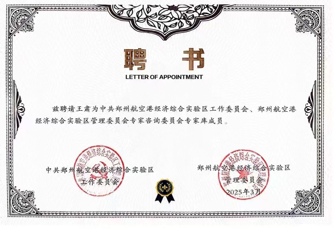 此前,王肃教授受聘郑州航空港经济综合实验区管理委员会的“专家咨询委员会专家库成员”。(通讯员 李帅通 审核 张金艳)