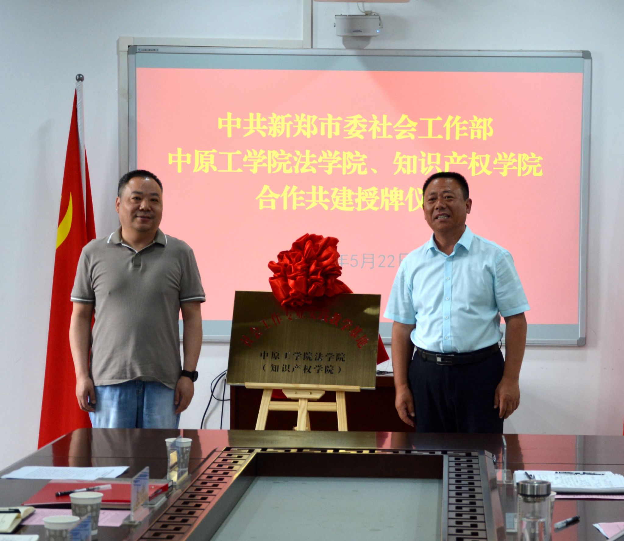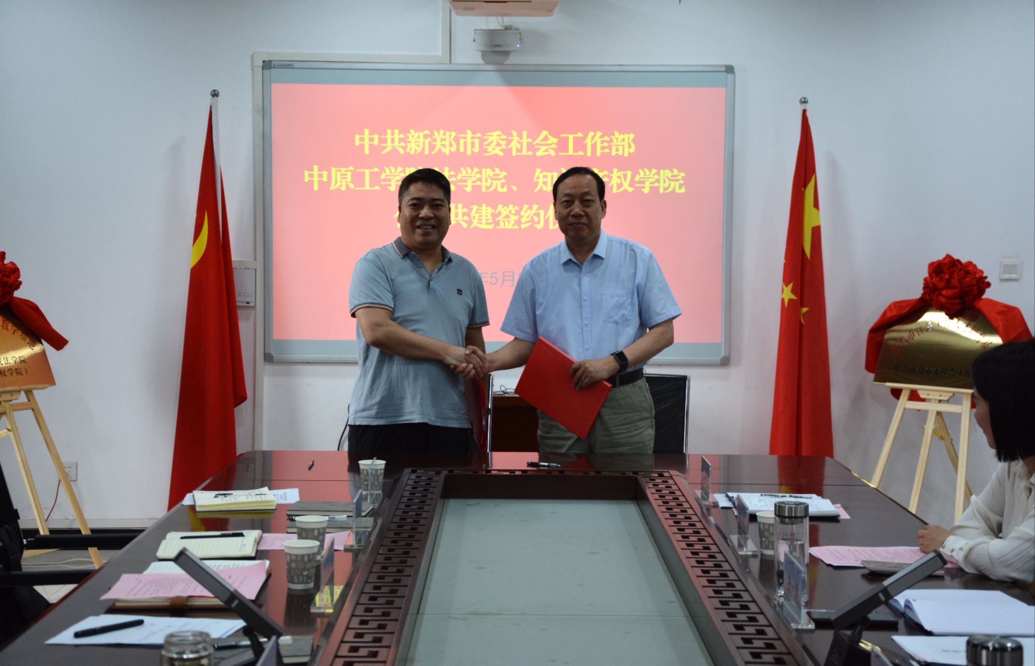 5月22日,新郑市委社会工作部与我院开展合作共建洽谈会。校纪委书记张爱华,新郑市委副书记、政法委书记姚志刚出席会议。会议由党委书记曲光华主持。