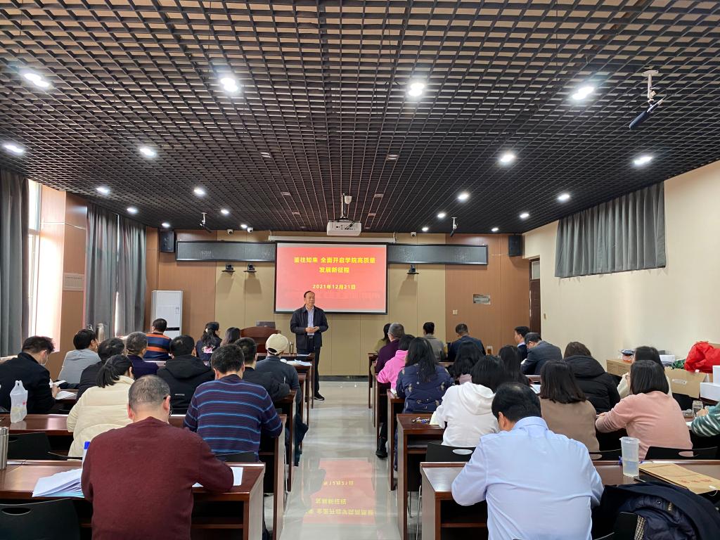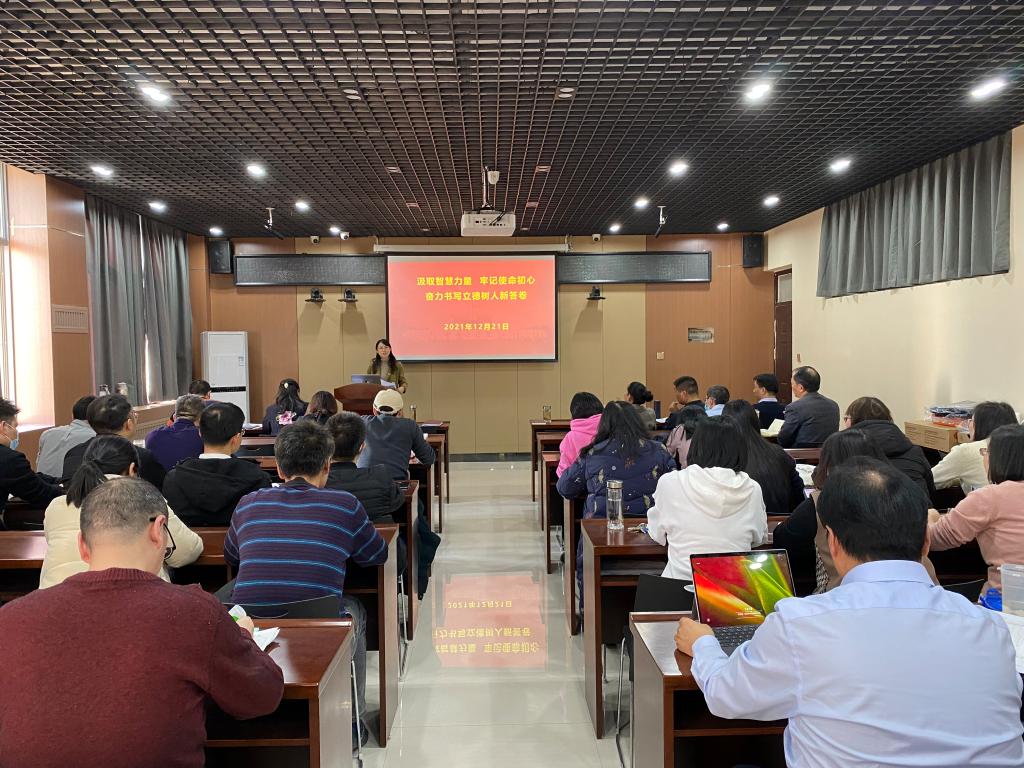 为深入学习贯彻党的十九届六中全会精神,扎实推进党史学习教育, 2021年12月21日下午,我院党总支书记、院长在3号组团楼A607会议室为全体党员师生讲授专题党课。