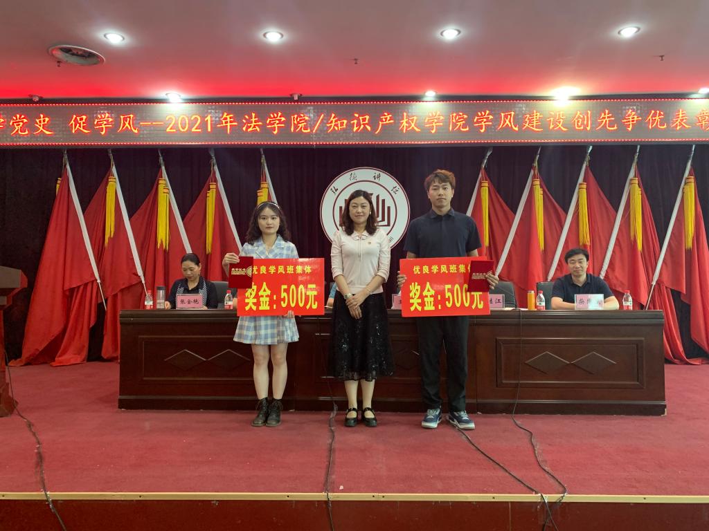 首先学院党总支书记李庆宣读了2019-2020学年学风建设创先争优先进集体和个人表彰文件以及2021届本科毕业生学风建设先进集体和个人表彰文件,党总支副书记任继江做了题为“学习党史砥砺前行,师生同心奋发有为,努力推进我院学风建设再上新台阶”的2021年williamhill英国学风建设工作报告,从法考、考研、四六级通过率、早晚自习情况、课堂考勤、挂科率及作弊率等方面做了详细报告,明确下一步强力推进学风建设的奋斗目标和任务。
