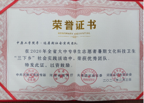 近日,共青团河南省委对在2020年全省大中专学生志愿者暑期文化科技卫生“三下乡”社会实践活动中表现良好的团队进行表彰,我院社会工作系“寻·迹”社会实践团队,在此次社会实践评比中荣获省社会实践活动优秀团队奖。