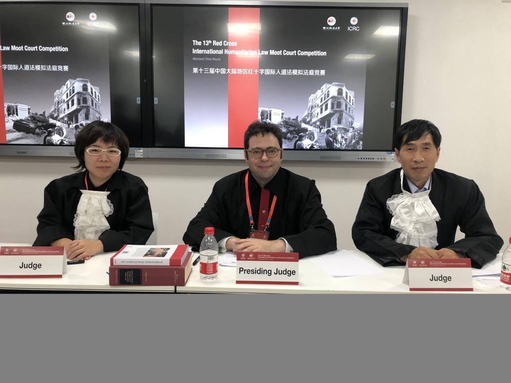 “红十字”国际人道法模拟法庭竞赛(International Humanitarian Law Moot Court Competition)由红十字国际委员会遵循其“推广战争法、国际人道法的理解与遵循”之义务而主办。肇于2007年,该赛事是中国大陆最早和最具影响力的全英文国际模拟法庭竞赛之一。比赛评委由国际审判组织现任法官、法学学者、驻华领事和国内外知名律师组成,并受到这些群体的关注和支持。