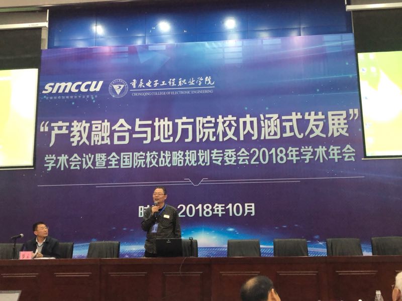 2018年10月19-21日,由中国院校战略规划专业委员会主办、重庆电子工程职业学院承办的“产教融合与地方院校内涵式发展”学术会议暨“全国院校战略规划专业委员会”2018年学术年会,在重庆召开。我校williamhill英国/知识产权学院吴殿朝教授作为该会的常务理事、学术委员会委员应邀参会。