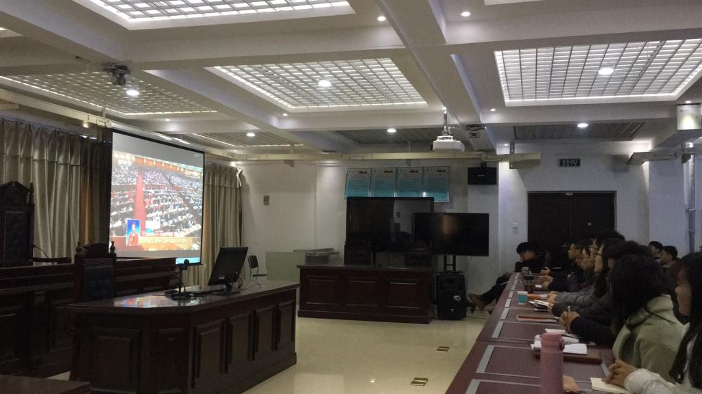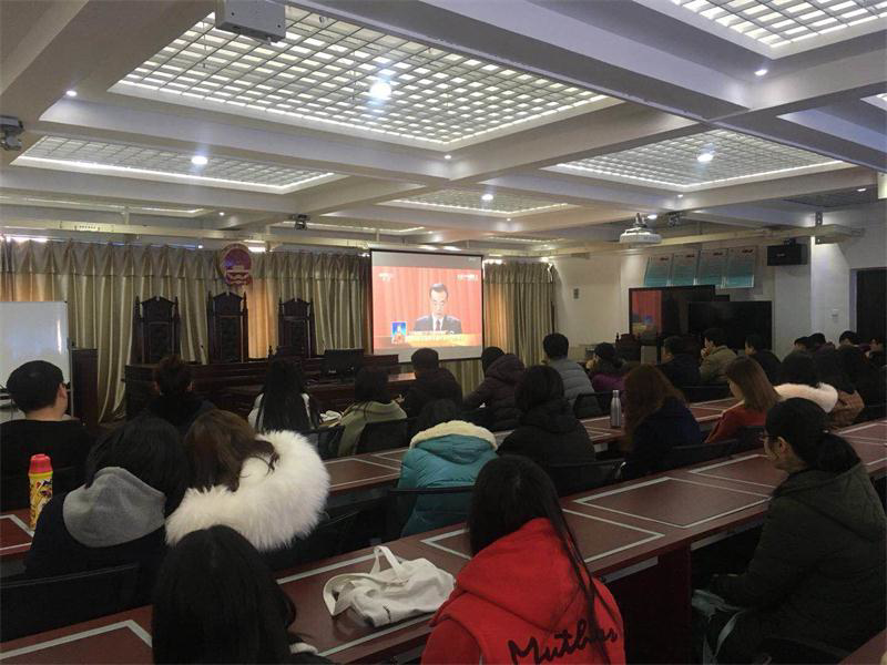 2018年3月5号,十三届全国人大一次会议隆重开幕的当日上午九点到十一点,williamhill英国师生在模拟法庭通过网络直播一同观看了此次会议。因为场地有限,未能到模拟法庭观看的师生,通过手机、电脑、电视多种途经进行了学习。当全体起立唱国歌时,整个会场庄严而严肃,在李克强总理做关于政府工作的报告时,每一个人都认真聆听。
