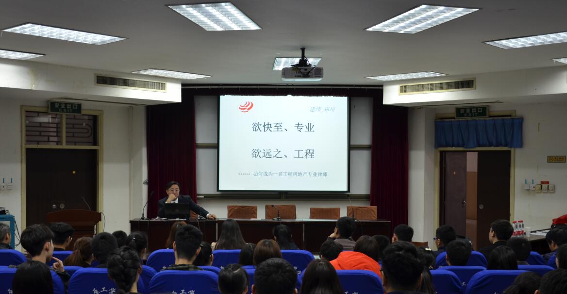 3月29日下午,“龙湖法律讲堂”第八讲暨研究生创新教育专家系列讲座《如何成为一名工程房地产专业律师》在我校4号楼311学术报告厅举行。本次讲座由河南省律师协会建筑房地产业务委员会主任栗魁主讲,我校师生近200人参加。