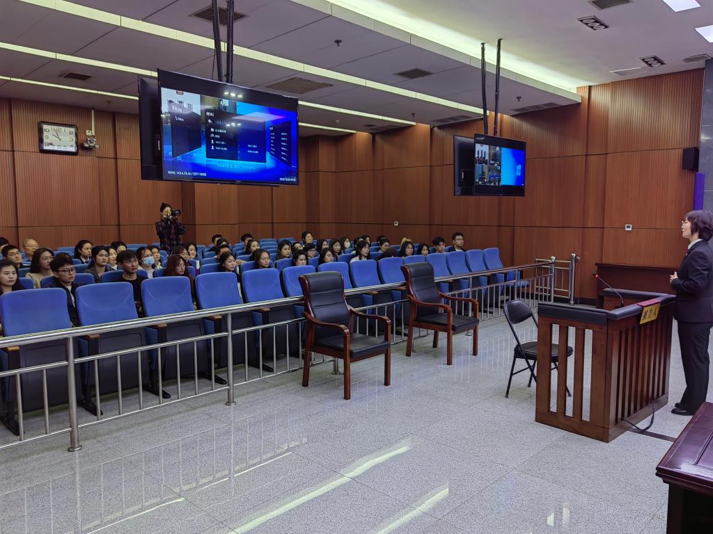 第五阶段,师生参观审判法庭并旁听了一起刑事诉讼案件。零距离观摩诈骗案件的真实审判过程,不仅使师生切身体验了庭审的基本流程,也深化了大家对诉讼法、刑法等相关法律知识的理解,法治素养得到提升。