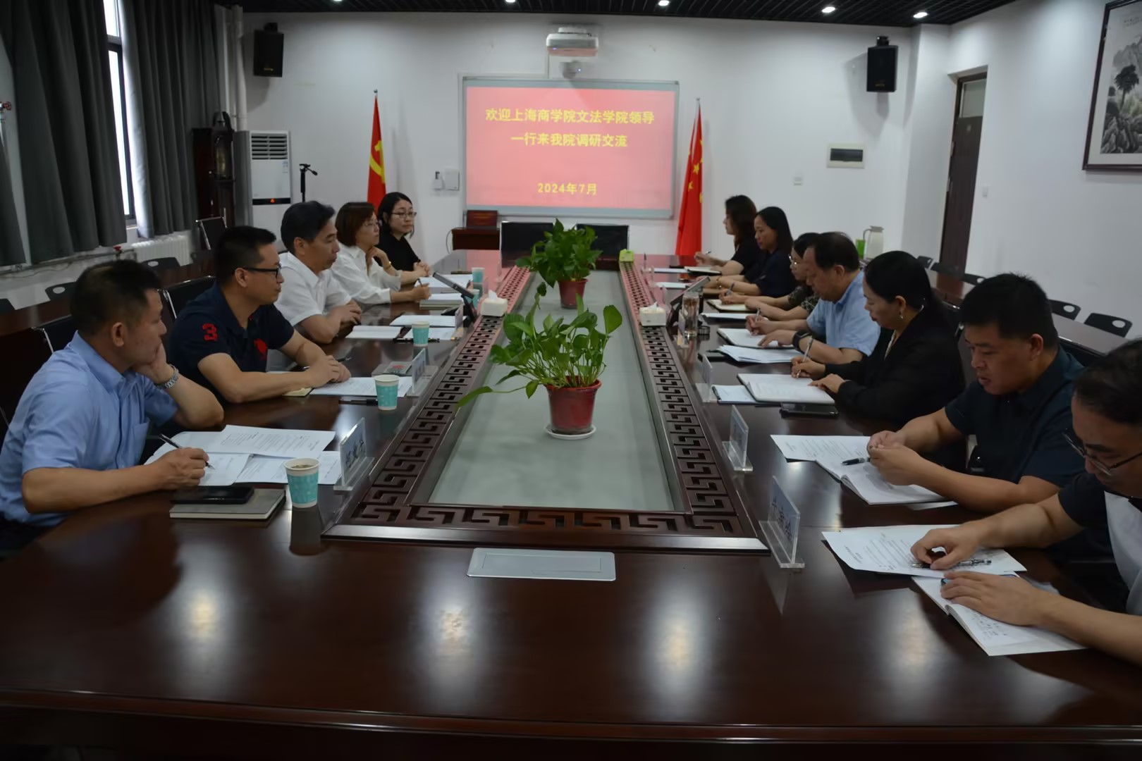 7月2日上午9时,上海商学院文法学院院长方有林教授、刘益梅教授、林沈节副教授、何爱华博士及钟菁博士一行5人来我院调研。我院党委书记曲光华、院长王肃、副院长张金艳和各系主任、研究生秘书一同参会。