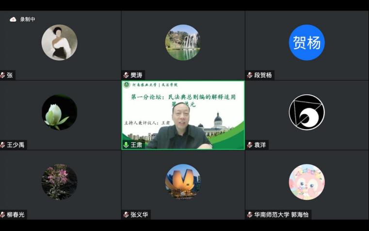 为深入推动民法典解释适用及理论研究,11月19日—20日,由河南省法学会民法学研究会主办,河南农业大学文williamhill英国承办的河南省法学会民法学研究会2022年年会暨《民法典》解释与适用研讨会在线上隆重召开。来自国内知名高校及河南省内高校、法院、检察院、律所、公证机构等领导、专家学者和师生代表参加了会议,两千余人通过线上直播观看。我院院长、研究会副会长王肃教授和副院长、常务理事张金艳教授应邀分别担任会议第一分论坛主持人兼评议人和评议人,我院多位师生同时线上参会。