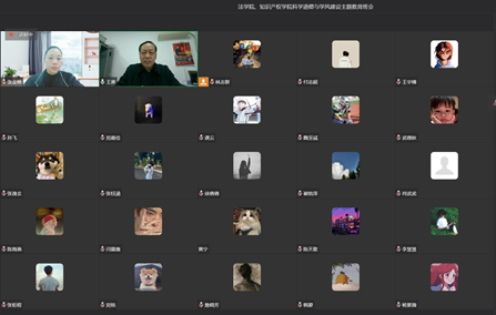 为响应学校号召,进一步推进我校研究生科学道德与学风建设,培养研究生严谨求实的科学态度,创新求实的科学精神,williamhill英国、知识产权学院于2022年11月12日召开科学道德与学风建设主题教育班会。会议由张金艳副院长主持,王肃院长、研究生秘书林志新老师和全体研究生参会。