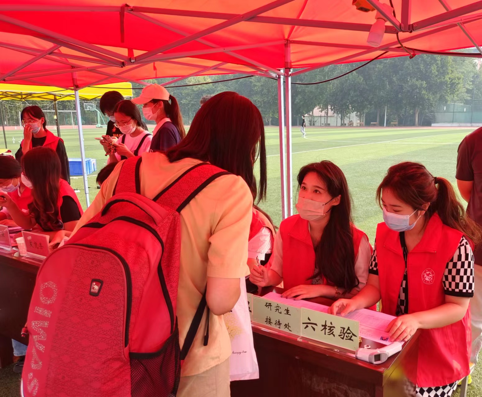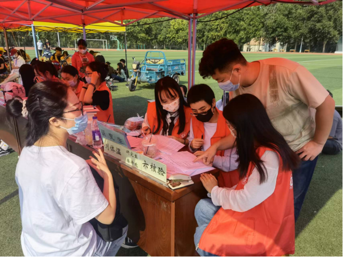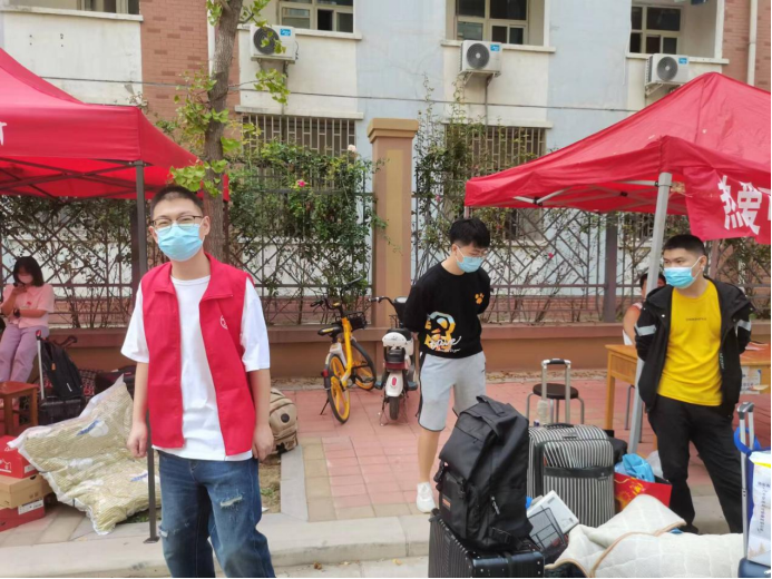 迎新期间,人员纷繁复杂,且受疫情影响,校外车辆不得自由出入校园,迎新志愿者们的任务更加沉重。但繁多的工作和扰人的高温并未消磨他们的热情,他们创新工作方法,采取“一对一”结对子模式,有针对性的服务新生,入校核验、注册报道、搬运行李、答疑解惑。校园道路上随处可见的奔波身影、湿透的T恤、顺着发梢滴下的汗水,都是志愿者们奉献、友爱、互助、进步精神的体现。(图:刘嘉佳/文:刘振永)