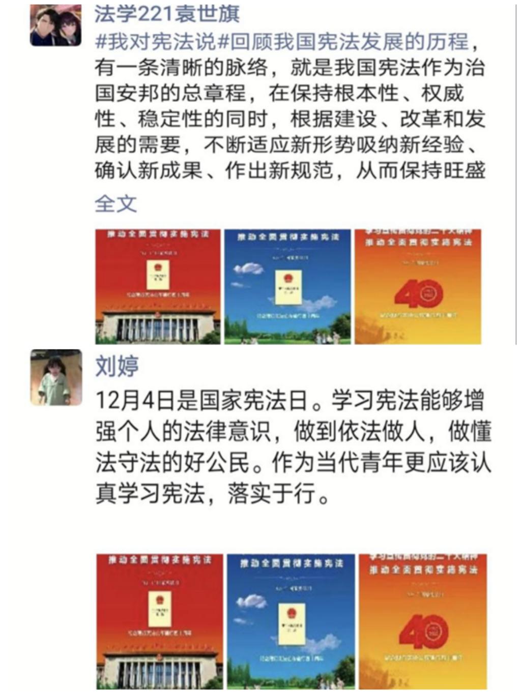 充分运用现代信息技术,探索开展互动式、体验式宪法教育,举办了“国家宪法日知识竞赛”活动和“我对宪法说”话题转发等线上宣传活动。