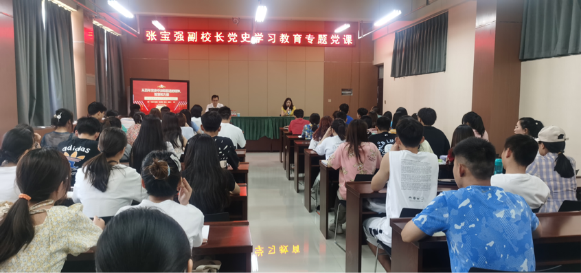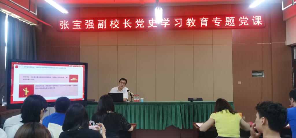 张宝强副校长本次党课的主题是“从百年党史中汲取前进的精神、智慧和力量”,首先从始终坚持思想建党、理论建党是我们的传统和优势讲起,阐述加强党的建设,开展党史学习教育的背景和意义,然后从为何学、学什么、怎么学等三个方面做了详细讲授。指出,要从“三个必然要求”深刻理解开展党史学习教育的重大意义,通过“六个进一步”准确把握党史学习教育的重点内容,从学史明理、增信、崇德、力行四个方面高标准高质量完成学习教育各项任务。