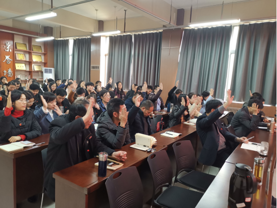 根据《中国共产党章程》等规定,会议严格按照无记名投票方式和差额选举办法,选举产生了李庆、王肃、任继江、付琛瑜、张金艳、柴国生、杨思乐等7名同志组成的新一届学院党总支委员会。同时大会审议通过了上一届委员会工作报告,号召全院党员及广大师生,以习近平新时代中国特色社会主义思想和党的十九大精神为指引,以更加坚定的信念、更加顽强的努力,鼓足干劲,振奋精神,抢抓机遇,锐意进取,为实现学院的跨越式发展而不懈奋斗!