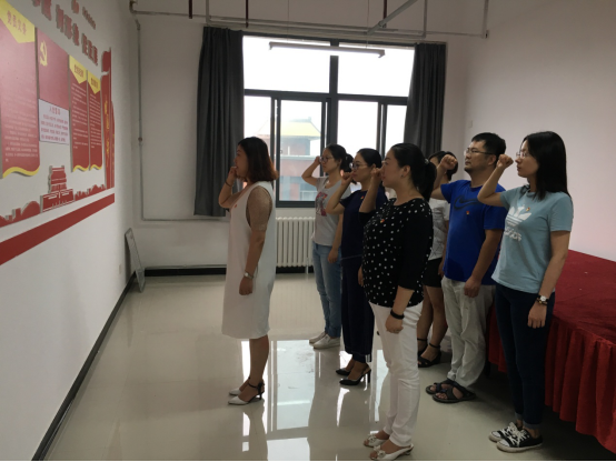 首先,在学院党总支副书记任继江同志的带领下,大家以集体宣誓的形式,开展了重温入党誓词活动。在鲜红的党旗下,全体党员佩戴党员徽章,举起右手、握紧拳头庄严宣誓,重温入党誓词时的承诺和决心,再一次接受心灵的净化和洗礼,共同谨记共产党员的政治责任和历史使命,不忘初心,坚定信念,将切实发挥共产党员的先锋模范作用,以更加饱满的热情投身各自工作。