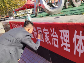 124日上午,院在校内开展了以礼赞宪法为主题的宪法晨读活动,组织学生对宪法序言及正文部分章节、条款进行集体朗读;组织学生登录教育部青少年普法网观看和参与直播活动,开展宪法教育;在滴水涌泉举办宪法宣传活动,通过回答宪法相关知识赢取积分、兑换丰厚奖品,我校师生积极参与活动,并纷纷在条幅上签字,在参与趣味活动的同时收获了宪法知识,树立了宪法信仰。