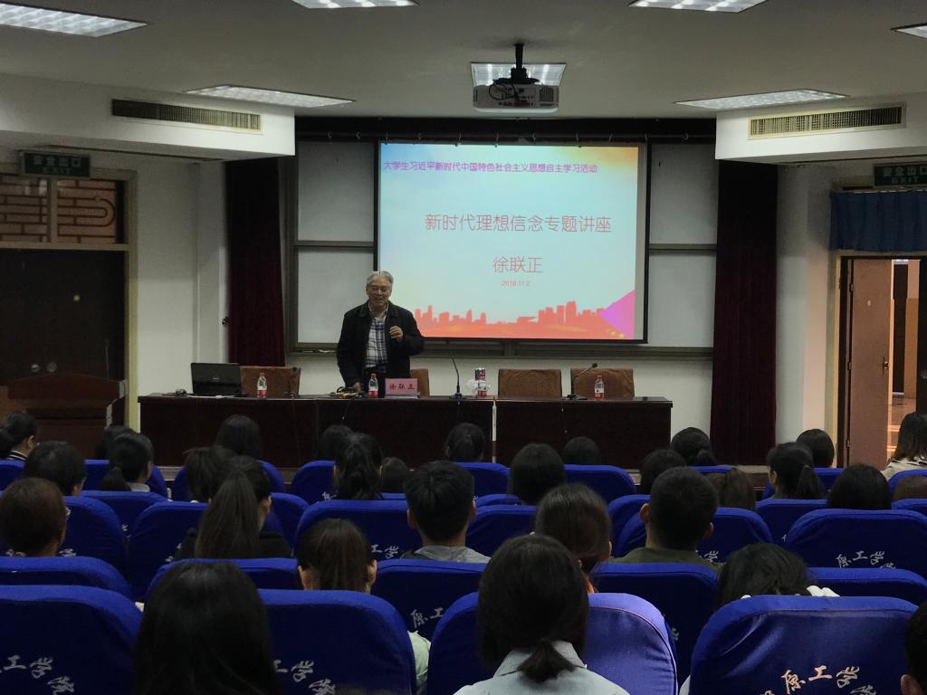 成立仪式之后,学习小组开展了第一次学习活动,聆听徐联正老师《新时代理想与信念专题报告》。报告中,徐老师作为共产党人所具有的崇高思想境界和朴素的人生观、价值观打动了在座的每一个人。同学们对党“为人民服务”的根本宗旨有了更深刻的认识。全场纷纷起立为徐老师点赞。