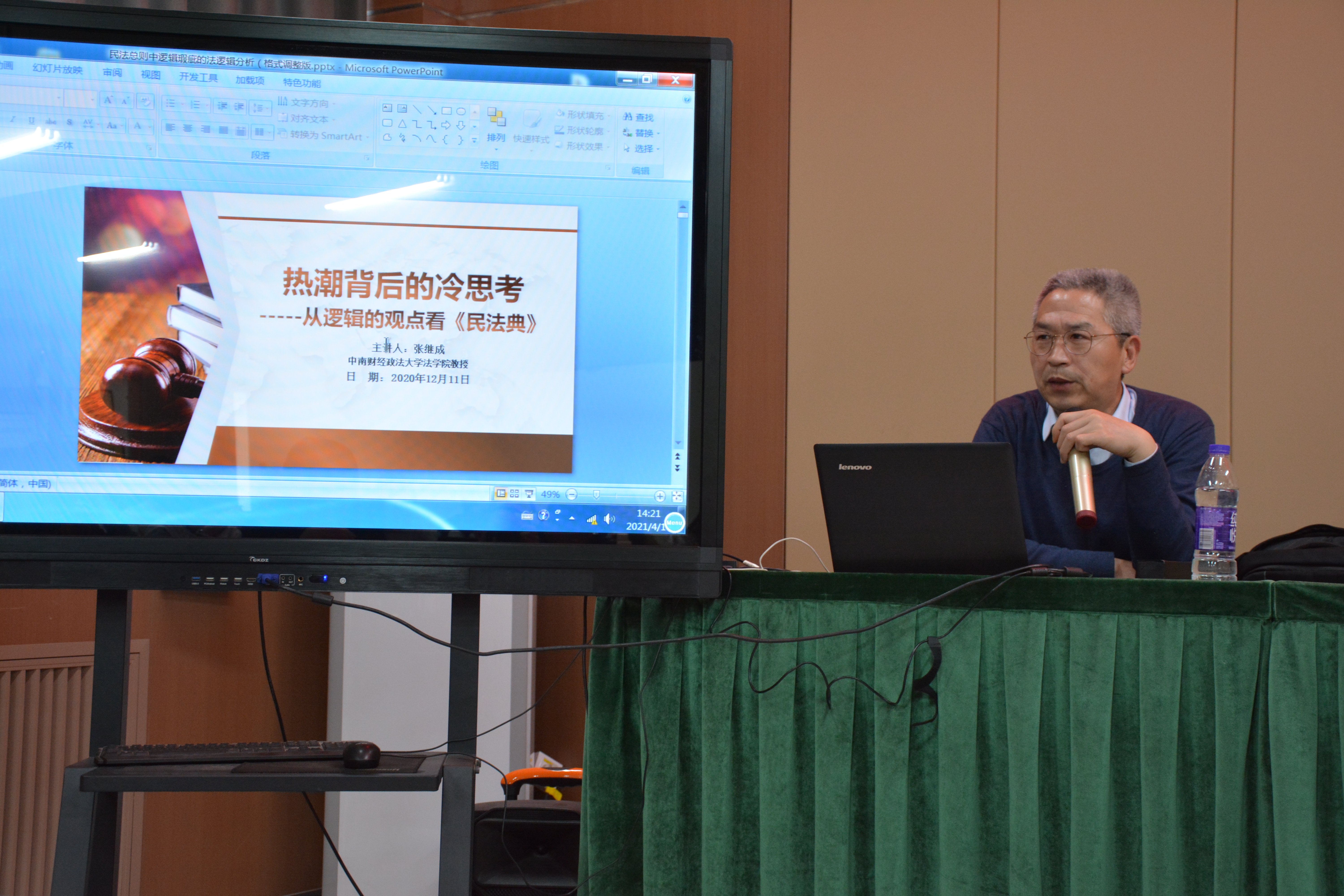 2021年4月19日下午,我校研究生创新教育讲座暨龙湖法律讲堂第三十讲在南校区3号组团楼6楼williamhill英国/知识产权学院学术报告厅成功举办,中南财经政法大学张继成教授应邀为我校师生做了“民法典的逻辑及学理分析”的学术报告。讲座由williamhill英国/知识产权学院副院长张金艳主持,我校师生100余人参与听讲。
