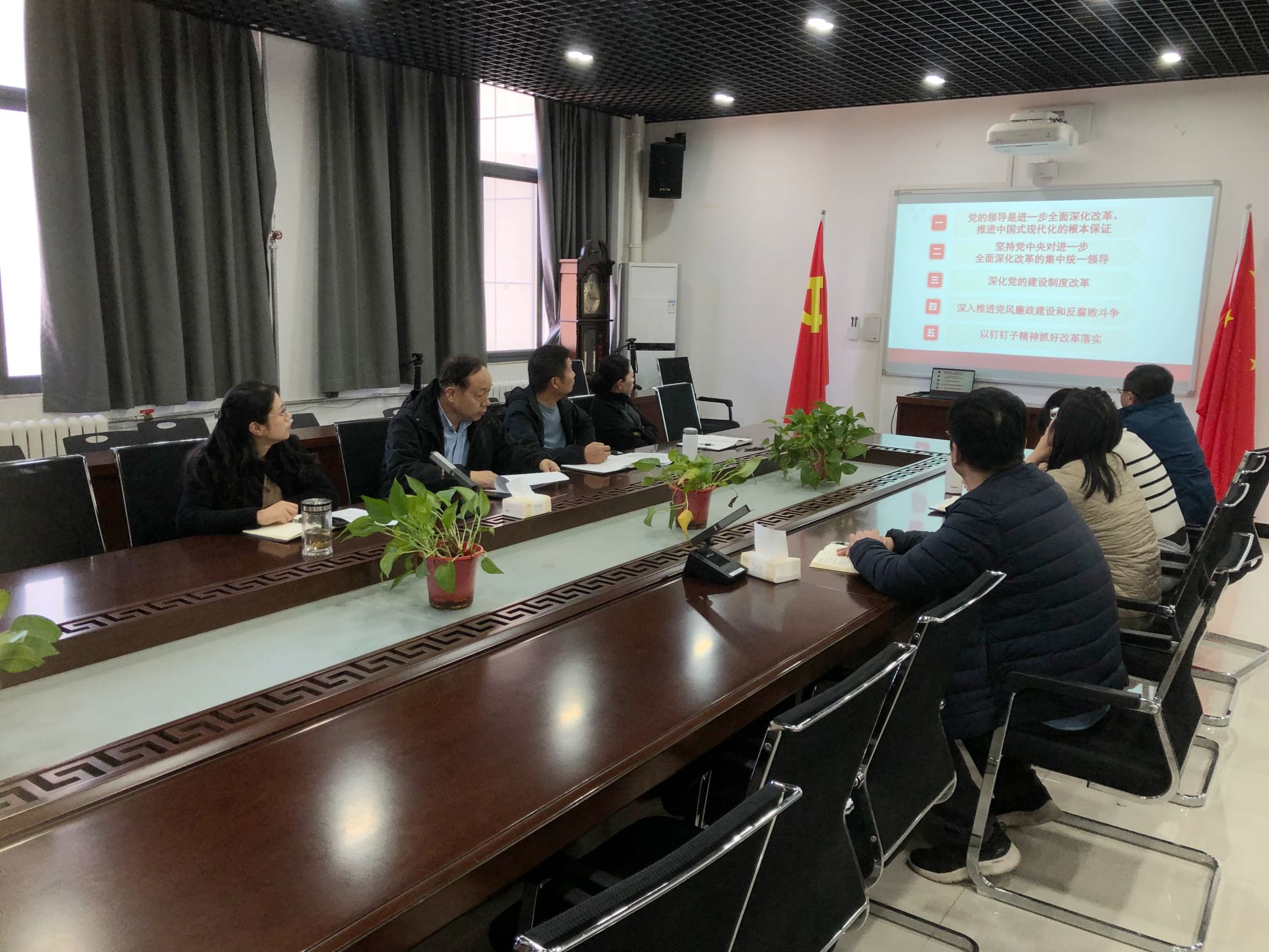 2024年11月28日下午,我院在三号组团楼B604召开党委理论学习中心组(扩大)会议。深入学习贯彻党的二十届三中全会精神专题培训。学院由党委书记曲光华主持,院长王肃、副院长付琛瑜、张金艳以及部分科级干部、党员代表参加学习。