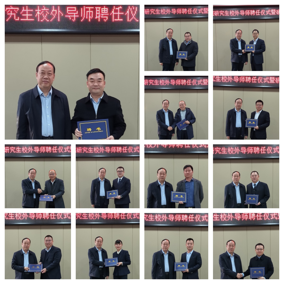 副院长张金艳介绍了校外导师遴选的过程并宣读williamhill英国、知识产权校外导师聘任及管理办法。院长王肃为本次续聘、新聘校外导师逐一颁发聘书并合影留念。