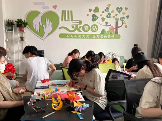 五月是全国大学生心理健康活动月,为迎接“525”大学生心理健康日,进一步营造和谐、健康的校园心理文化氛围,启迪创新思维,感悟劳动之美,丰富同学们的课余文化生活,5月23日下午,我院在三号组团教学楼B603“心灵驿站”举办了“心灵手巧”暨心理手工创作体验与成果展示活动。